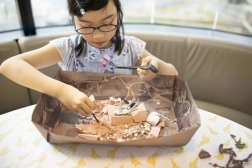 Zažij skutečné vykopávky. Sádrový blok skrývá jednotlivé části kostry, které děti odkryjí pomocí přiložených nástrojů.