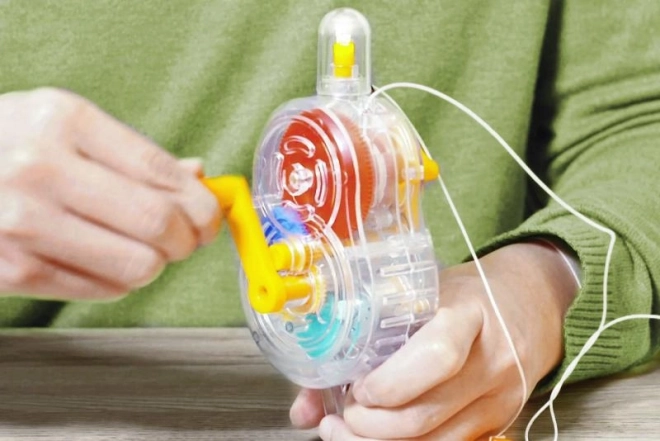 Objevte principy mechaniky a elektřiny zábavnou formou. Tato chytrá experimentální sada využívá ruční generátor nebo gravitační pohon, aby rozsvítila žárovku v průhledném těle s viditelnými ozubenými koly. Ideální pro domácí pokusy, školní projekty i jako ekologická inspirace.