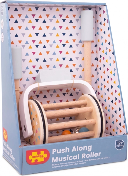 Nádherně zpracovaný hudební váleček z 100% FSC® dřeva podporuje nejen motoriku, ale také smyslové dovednosti vašich dětí. Díky jeho pohybu a zvuku rolničky, která se pohupuje mezi dřevěnými laťkami, dítě rozvíjí své sluchové schopnosti. Hračku tvoří kombinace přírodního a barevného dřeva, přičemž barvy stimulují zrakové vnímání.