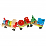 Roztomilý dřevěný vláček s lokomotivou a dvěma vagónky je skvělá hračka pro děti od 3 let. Obsahuje barevné kostky a sorter pro procvičení motoriky, učení tvarů a barev a rozvoj logického myšlení. Vláček má pohyblivá kola a šňůrku pro tahání, takže si děti užijí spoustu pohybu i tvořivé hry.