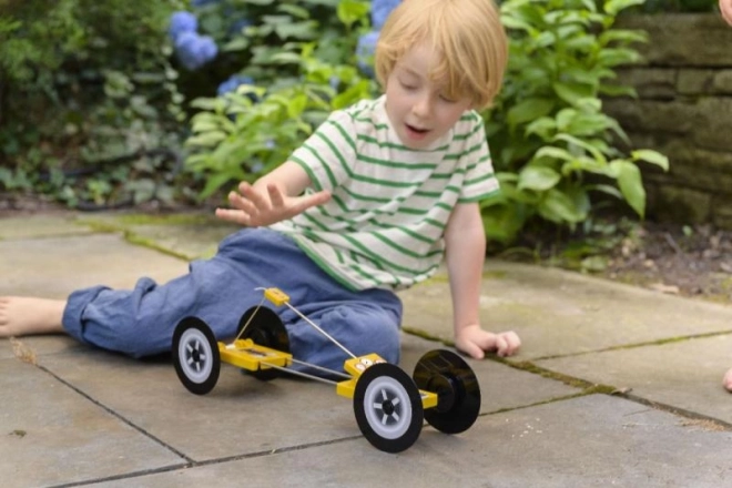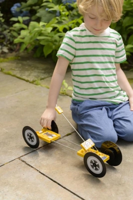 KidzLabs závodní auto ukazuje dětem základy fyziky skrze přeměnu energie z pastičky na pohyb.