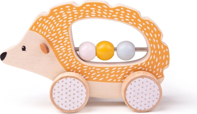 Ježek pomáhá rozvíjet jemnou motoriku díky pohyblivým korálkům na kovové tyči.