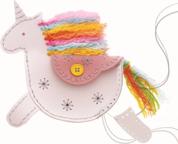S touto kreativní sadou si děti jednoduše ušijí vlastní peněženku jednorožce z odolného textilního materiálu připomínajícího koženku. Díly jsou předem vyražené pro snadné provlékání, takže si děti bezpečně osvojí základní techniky šití a na konci získají praktický doplněk, do kterého si uloží drobnosti.