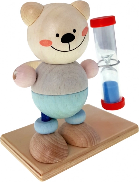 Zpříjemněte dětem každodenní hygienu s roztomilými přesýpacími hodinami ve tvaru medvídka. Odpočítají ideálních 2 minuty pro správné čištění zubů a díky praktickému držáku na zubní kartáček budou mít děti vše po ruce. Přírodní neošetřené dřevo a kvalitní zpracování vyrobené v Německu zaručují bezpečnost i odolnost.