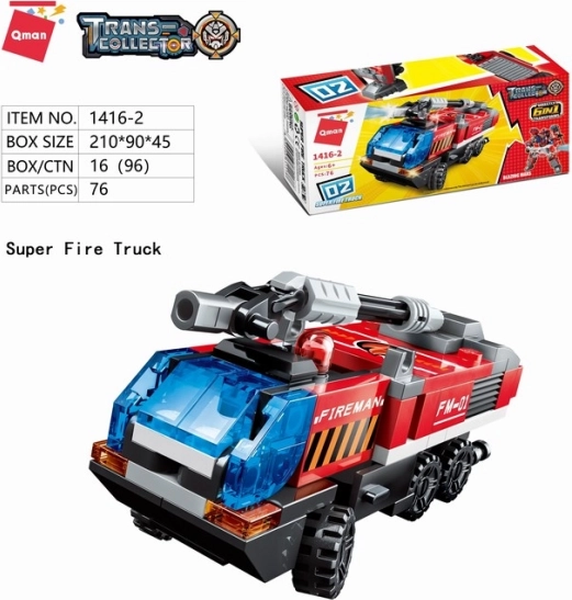 Tato variabilní sada zahrnuje šest ministavebnic hasičské techniky, které lze stavět samostatně, nebo je zkombinovat do působivého hasičského mecha. Díky pevným a zdravotně nezávadným dílkům z ABS plastu je stavebnice vhodná pro časté přestavování a intenzivní hraní.