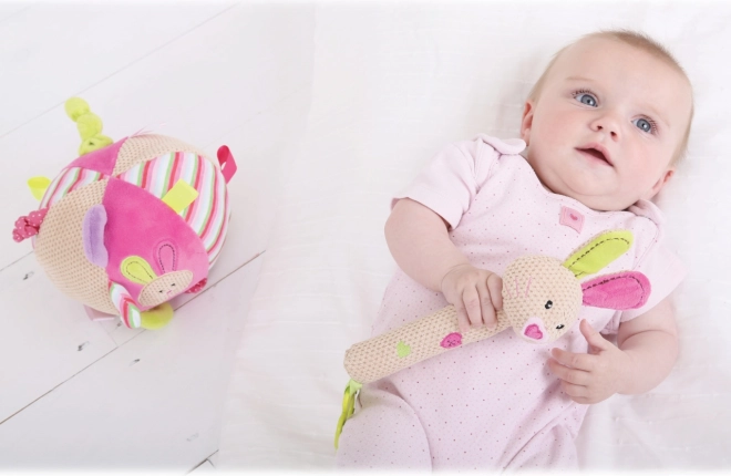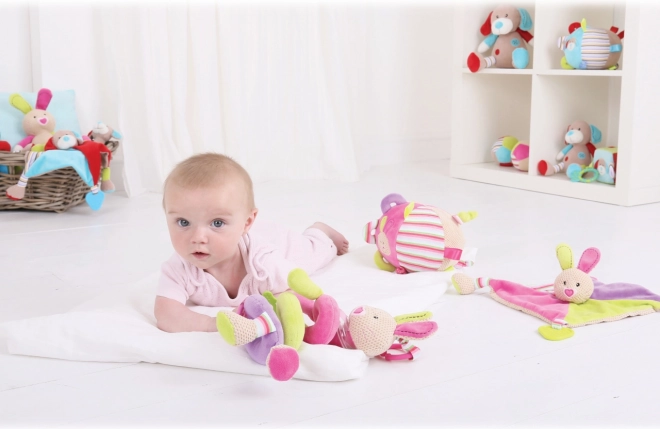 Tato pestrobarevná textilní koule přináší do dětského světa radost a objevování. Je vytvořena s cílem podpořit smyslový a motorický rozvoj miminek. Děti budou okouzleny různými texturami a barvami, které koule nabízí.