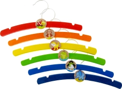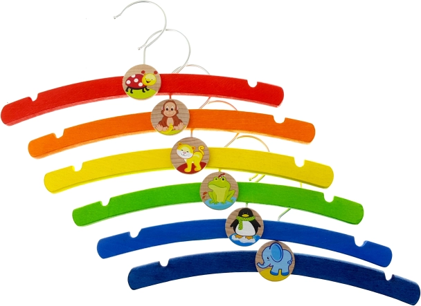 Představujeme sadu šesti pestrobarevných dřevěných ramínek, které jsou ideální pro dětské oblečení. Každé ramínko nese obrázek zvířátka, které povzbudí děti k samostatnému oblékání.