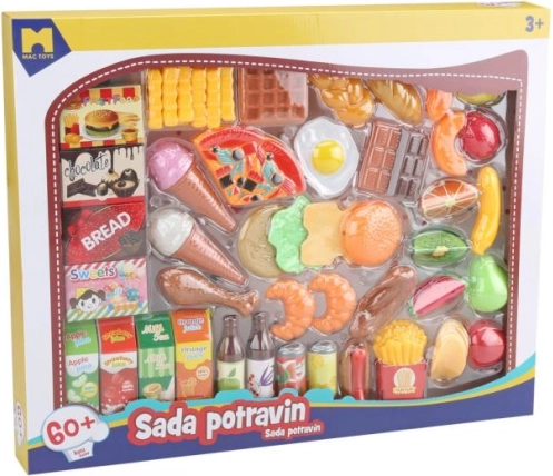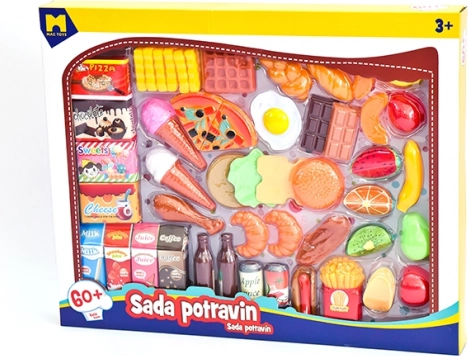 Objevte realistické makety potravin, které dětem umožňují hravě poznávat svět jídel. Tato sada obsahuje rozmanité druhy jako ovoce, zeleninu, nápoje a pečivo.