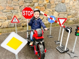 Se sadou dětských dopravních značek proměníte jakýkoli prostor v zábavné a poučné dopravní hřiště. Díky výšce 81 cm jsou značky dobře viditelné a stabilní, takže se hodí pro domácí i venkovní použití. Jednoduché sestavení umožní začít s hraním během chvilky.