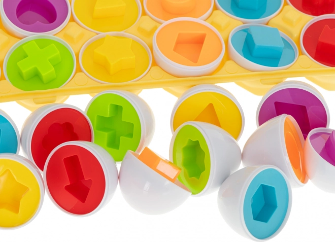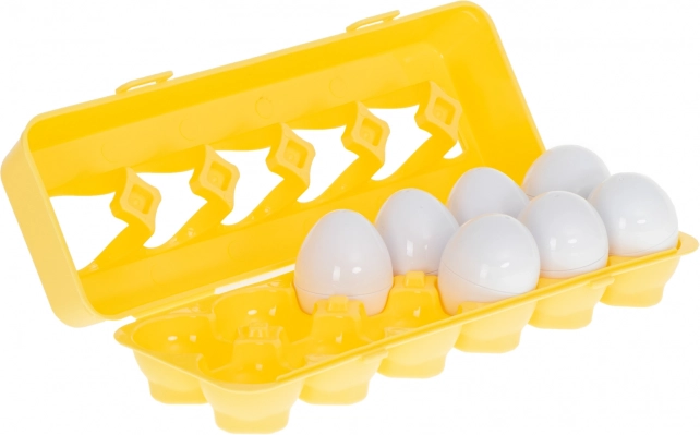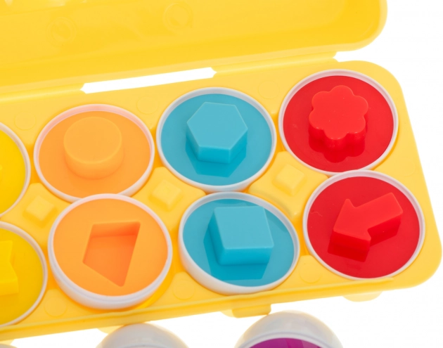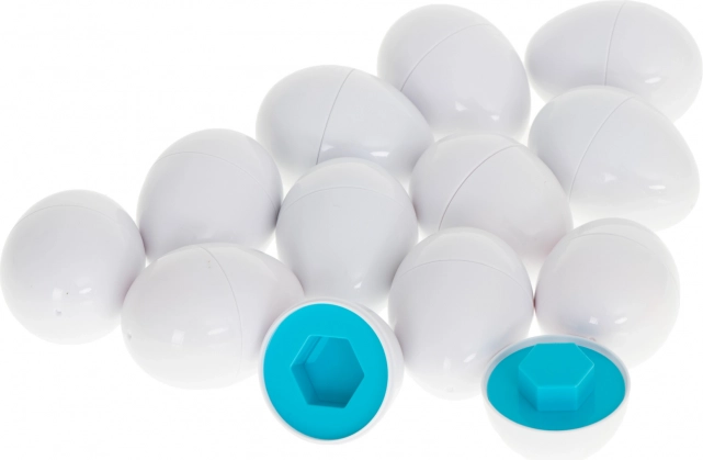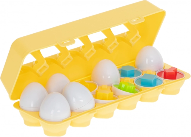 Set obsahuje 12 vajíček s různými tvary a barvami ukrytými pod skořápku. Hra spočívá v přiřazování poloviny vajíčka podle tvaru a barvy tak, aby vytvořily celek. Toto je nejen zábavná, ale také edukativní činnost, která posiluje logické myšlení. Vejce jsou lehká a snadno přenosná, což je činí ideálními pro zabavení při dlouhých cestách nebo při čekání na návštěvu u lékaře.