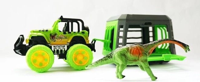 Vydejte se na dobrodružnou výpravu s plastovým jeepem, odpojitelným přívěsem a vyndavacím dinosaurem. Tato sada podporuje fantazii, rolové hry a rozvoj jemné motoriky dětí.