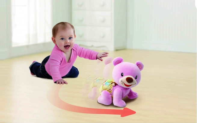 Medvídek je navržen tak, aby inspiroval děti ke stání na čtyřech a k lezení díky povzbuzujícím pokynům jako „Polez se mnou“. Manipulací s barevnými tlačítky se děti přirozeně učí poznávání tvarů a barev, čímž rozvíjejí své smyslové vnímání.