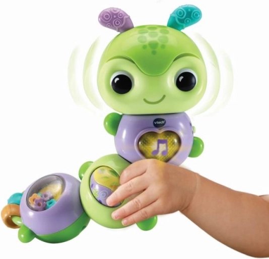Objevte zábavu a učení s hračkou VTech Užvaněná housenka, která nabízí milé písničky, veselé melodie a zábavné fráze. Díky otáčecím segmentům, svítícímu tlačítku srdíčko a korálkům a kroužkům skvěle rozvíjí jemnou motoriku, smyslové vnímání a koordinaci oko–ruka.