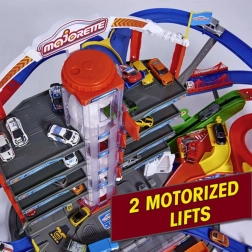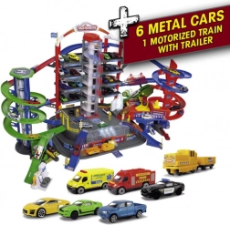 Garáž Super City od značky Majorette přináší dětem propracovaný svět města s 7 patry, barevnými sjezdovými tratěmi a bohatou výbavou. Součástí je 6 kovových autíček s plastovými koly pro plynulou jízdu a lokomotiva s vagónem na baterie. Realistické světelné a zvukové efekty podpoří představivost a nekonečnou hru.