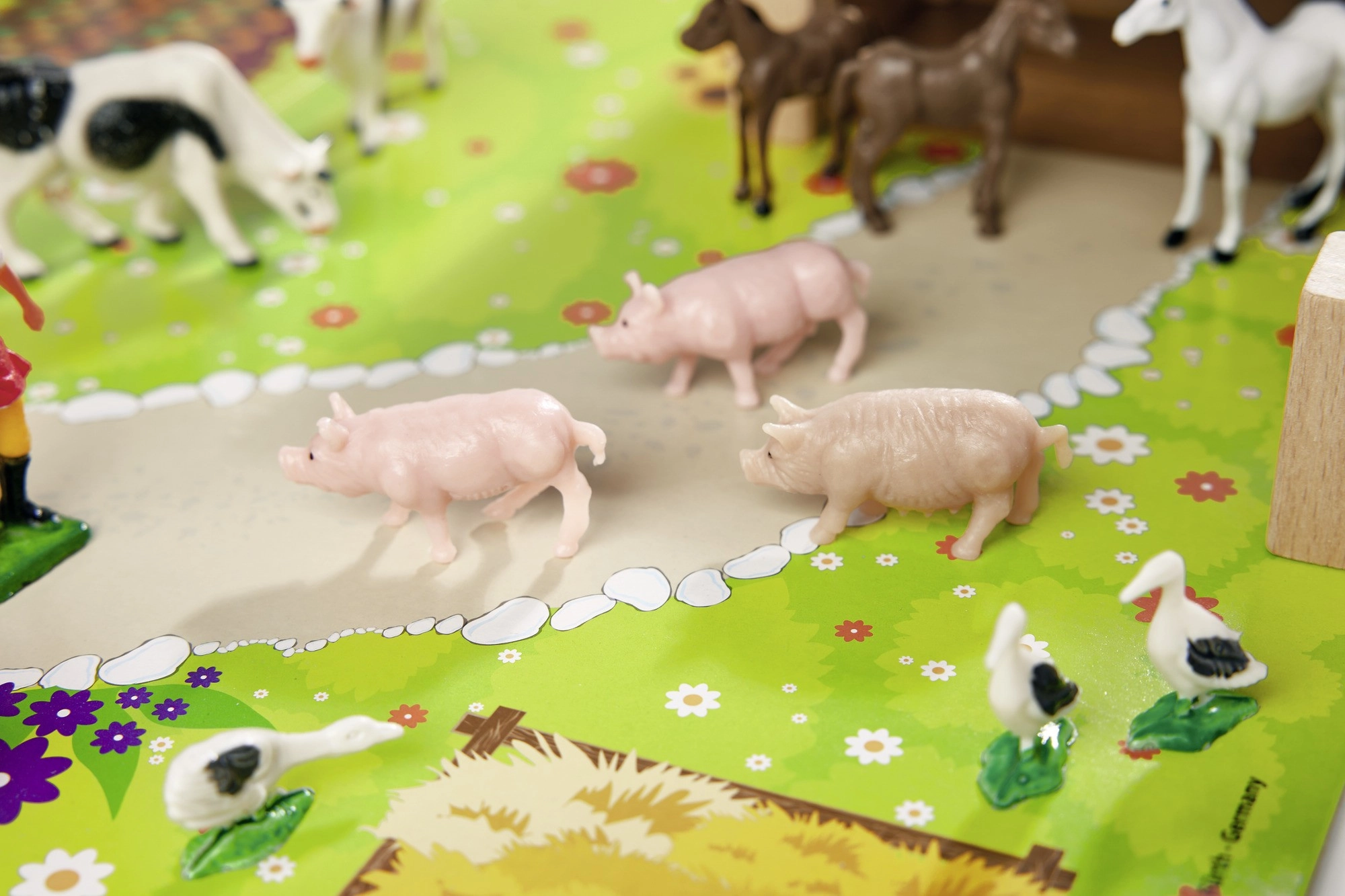 Koně, krávy, prasátka, husy a pečovatelka podněcují fantazii, učí děti rozpoznávat druhy zvířat a rozvíjejí sociální dovednosti v rámci role-play.