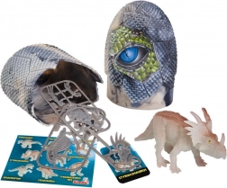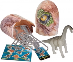 Tato zábavná figurka dinosaura ve vajíčku přináší dětem i dospělým radost z objevování. Každé vejce ukrývá detailně zpracovanou figurku o velikosti 10 cm, mini skládačku kostry dinosaura a stylovou sběratelskou kartičku. Dinosaurus svítí ve tmě, takže potěší i po zhasnutí světel.
