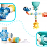 Barevná vodní dráha s motivy mořských zvířátek promění každou koupel v objevování. Nalijte vodu do horního nálevky a proud aktivuje propojené trubičky, roztočí kolečka a rozhýbe figurky – zábava, která udrží pozornost dětí a zpříjemní každodenní koupání.