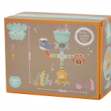 Nalijte vodu do horního trychtýře – proud roztočí vodní kolo, rozproudí labyrint trubiček a spustí hravé efekty se zvířátky. Ideální motivace ke koupání.