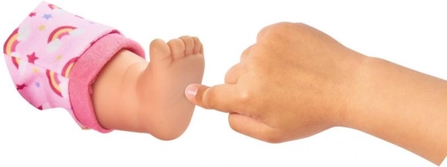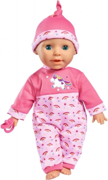 Tato panenka je dodávána v krásném růžovém oblečku s motivem jednorožce a duhových vzorů, který jistě potěší každé dítě.