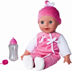 Součástí panenky jsou doplňky jako lahvička a dudlík, které usnadňují předstíranou hru a péči o miminko.