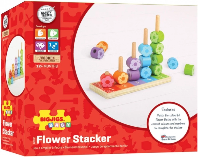 Dřevěné nasazování barevných květinek BIGJIGS je ideální edukativní hračka pro první učení. Děti při hře přirozeně poznávají barvy, třídí tvary a procvičují počítání, zatímco rozvíjejí jemnou motoriku. Robustní dřevěné provedení a hladké hrany zajišťují bezpečné a dlouhodobé používání.