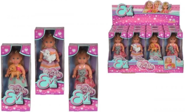 Objevte kouzlo hraní s panenkou Evi Love, která je nejen roztomilá společníčka, ale také podporuje rozvoj dětské představivosti. Každá panenka v této edici je vybavena jedním ze tří zvířátek - pejskem, kočičkou nebo králíčkem: