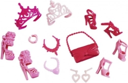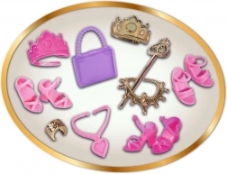 V setu najdete různé večerní róby, třpytivé prvky a tematické doplňky jako tiáry, boty, kabelky a šperky, které lze vzájemně kombinovat. Tato rozmanitost zaručuje hodiny tvořivé a samostatné hry.