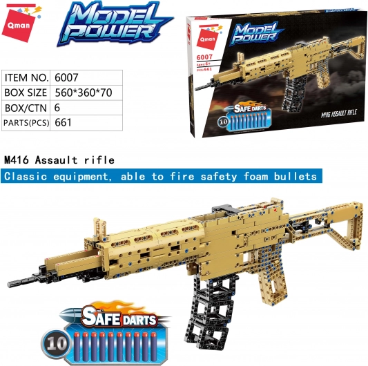Objevte svět zábavy a kreativity s stavebnicí útočné pušky Qman M416. Tato variabilní stavebnice z pestrobarevných plastových kostiček vám umožní: