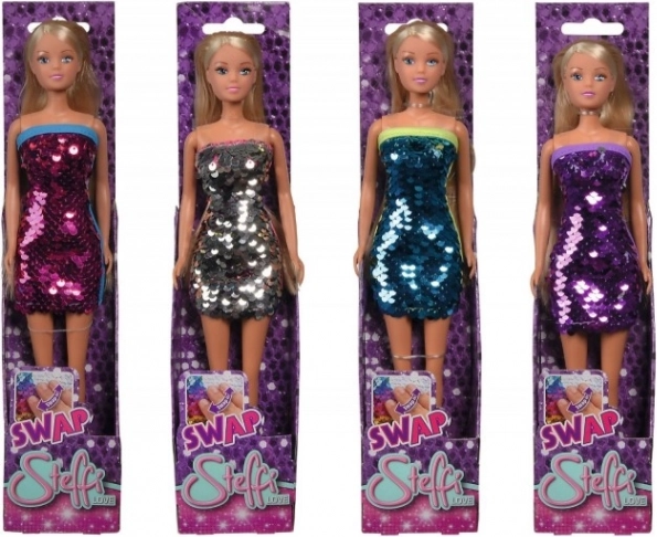 K dispozici jsou 4 barevné varianty šatů s efektem „swap“: fialová ↔ stříbrná, modrá ↔ žlutá, růžová ↔ modrá, stříbrná ↔ pestrá. Cena platí za jednu panenku a varianta je vybírána náhodně dle aktuální skladové dostupnosti.