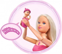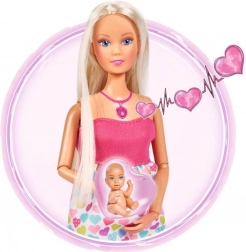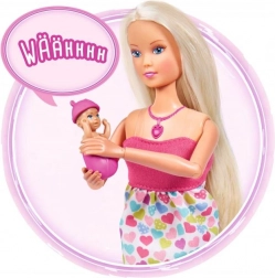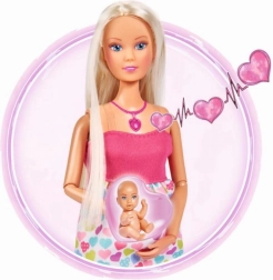 Objevte kouzlo pečovatelských her s panenkou Steffi Love, která je těhotná a nabízí realistické zvukové efekty. Po stisknutí srdíčkového náhrdelníku uslyšíte tlukot srdíčka miminka, pláč novorozence i uklidňující melodii. Součástí je nosítko a doplňky pro péči o miminko a funkce try-me pro okamžité vyzkoušení.