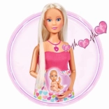 Objevte kouzlo pečovatelských her s panenkou Steffi Love, která je těhotná a nabízí realistické zvukové efekty. Po stisknutí srdíčkového náhrdelníku uslyšíte tlukot srdíčka miminka, pláč novorozence i uklidňující melodii. Součástí je nosítko a doplňky pro péči o miminko a funkce try-me pro okamžité vyzkoušení.