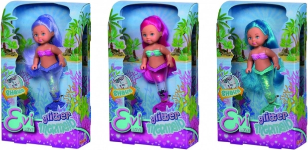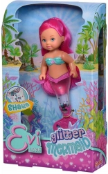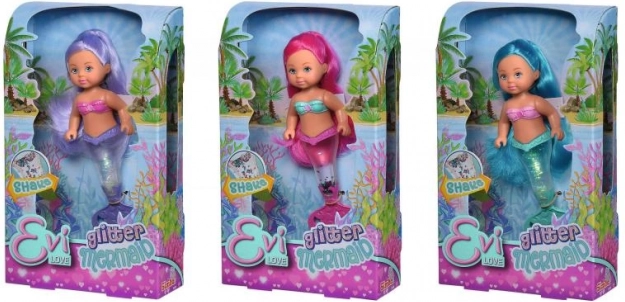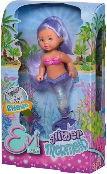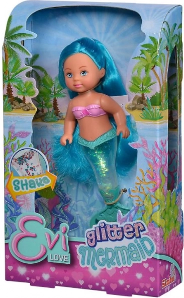 Objevte kouzelný svět pod hladinou s panenkou Evi Love v podobě mořské víly. Její ocas je naplněný třpytkami, které se po zatřesení krásně rozvíří a vytvoří zářící efekt. Díky kompaktní výšce 14 cm se panenka snadno drží i menším dětem a skvěle se hodí na cesty.