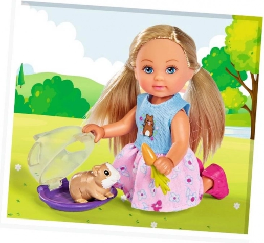 Panenka Evička Veterinářka s morčátkem a příslušenstvím. Velikost panenky 12 cm.