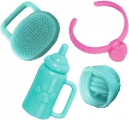 Sada obsahuje misky na krmení, lahvičku, kartáč a hračky pro koťátko, což přináší více možností hry.