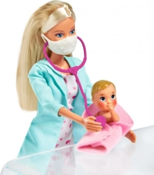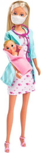 Steffi je oblečená v bílorůžovém lékařském oděvu s modrým pláštěm a má na sobě zdravotní roušku. Interaktivní hra s touto krásnou panenkou rozvíjí empatii a posiluje schopnost pečovat o druhé. Perfektní dárek pro děti, které chtějí být lékaři!