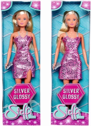 Stylová panenka STEFFI LOVE Silver Glossy okouzlí třpytivými růžovo‑stříbrnými šaty, elegantními doplňky a dlouhými blond vlasy. Ideální pro kreativní hraní a módní příběhy, dostupná ve 2 variantách o výšce 29 cm.
