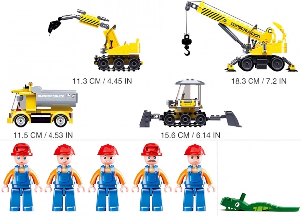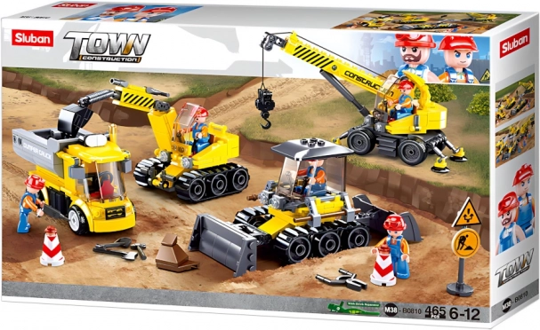Sluban Staveniště obsahuje všechny potřebné prvky k vytvoření plnohodnotného stavebního areálu se 465 dílky.