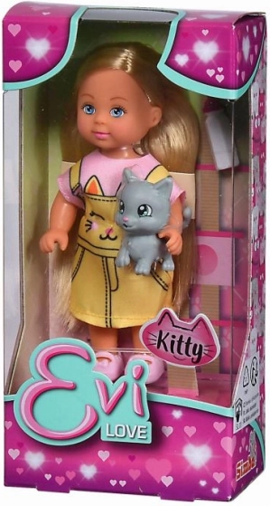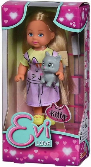 Každá panenka Evi Love přichází s šedým koťátkem pro nekonečné příběhy o péči a mazlení.