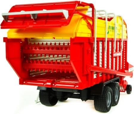 Přivezte si na dvůr skutečnou atmosféru sklizně. Sběrací vůz BRUDER Pöttinger Jumbo 6600 vyniká pevnou konstrukcí, typickým červeno‑žlutým designem a precizními detaily, které věrně napodobují originální zemědělskou techniku. Děti snadno otevřou bočnice i zadní vrata, sklopí žebřík a sejmutí střešních madel jim umožní nahlédnout do útrob vozu.
