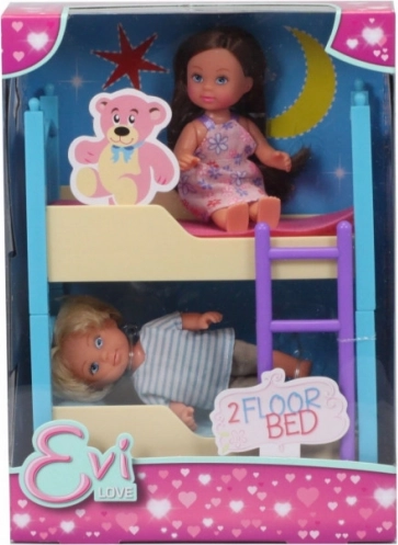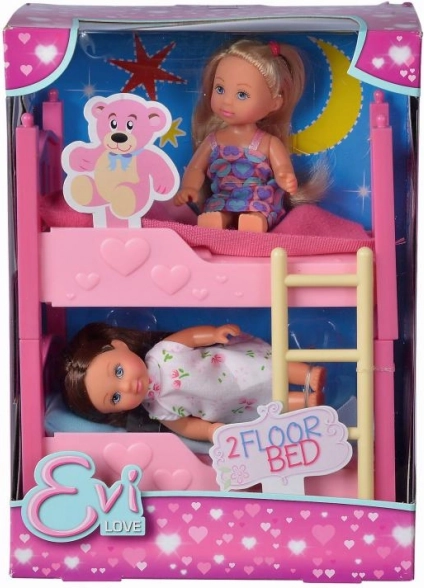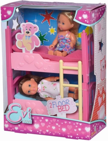 Vytvořte útulný pokojíček pro své panenky s okouzlujícím setem Evi Love. Dvě malé panenky mohou spát na dvoupatrové posteli s praktickým žebříkem, takže je večerní ukládání do postýlky stejně zábavné jako hraní během dne.