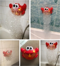 Tento roztomilý krab promění koupel v zábavnou show plnou bublinek. Do vyjímatelné nádržky jednoduše nalijete směs vody a malého množství pěny do koupele, stisknete tlačítko ON a krab začne vytvářet bohatou pěnu doprovázenou příjemnou melodií. Ideální pro děti, které milují vodu, i pro malé odpůrce koupání – hravá forma je spolehlivě zabaví.