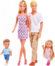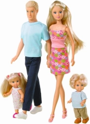Rodinný set panenek Steffi je perfektní pro rozvoj dětské tvořivosti a schopností vyprávění příběhů. Set obsahuje čtyři panenky: Steffi, Kevin a jejich děti Timmy a Evi, všichni oblečení ve stylu casual elegance. Panenky jsou ve výškách 30 cm, 29 cm, 12 cm a 12 cm.