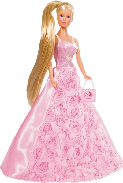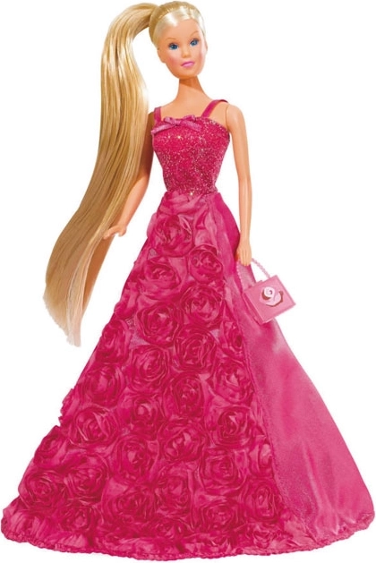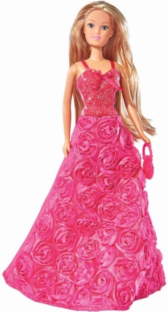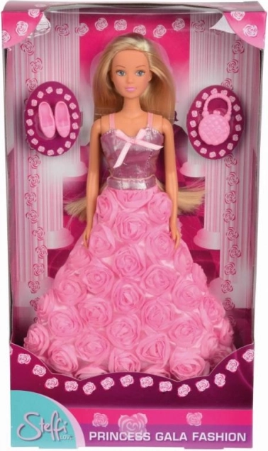 Elegantní panenka Steffi Love Princezna Gala nabízí dětem možnost ponořit se do světa módy a fantazie. Oblečena v nádherných šatech s růžovými vzory a vybavena kabelkou, je ideální pro každé hračičkové dobrodružství.