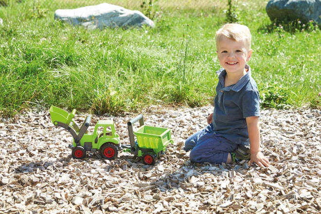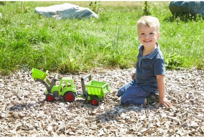 Traktor LENA ECO přináší zábavu i odpovědnost k přírodě. Díky robustnímu zpracování z recyklovaných materiálů a příměsi dřeva je odolný a bezpečný pro malé řidiče. Přední nakladač je plně funkční a umožňuje nabírat a přesypávat materiál, což podporuje jemnou motoriku a kreativní hru.