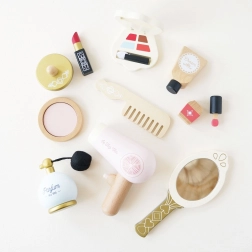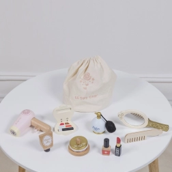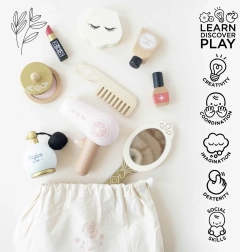 Staňte se hvězdou vlastní show s touto stylovou kosmetickou taškou pro děti! Obsahuje vše potřebné pro hru na vizážistu – od krému až po fén. Vyrobena z přírodní bavlny a kvalitního dřeva s certifikací FSC®, ručně domalováno ekologickými barvami. Podporuje představivost, jemnou motoriku a hru na role.