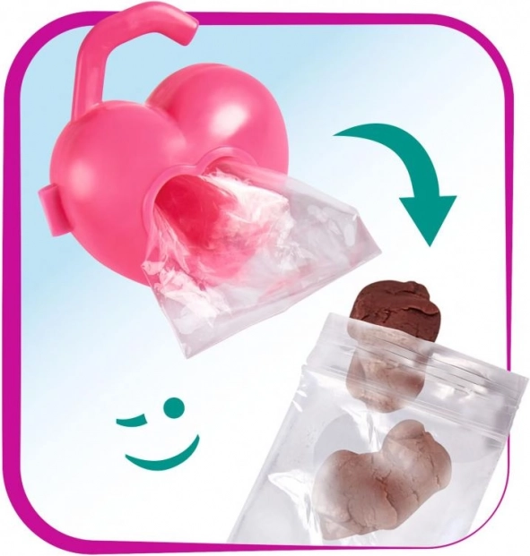 Součástí setu je vodítko, modelína, tvarovací forma a srdíčková krabička se sáčky – vše, co malý chovatel potřebuje.