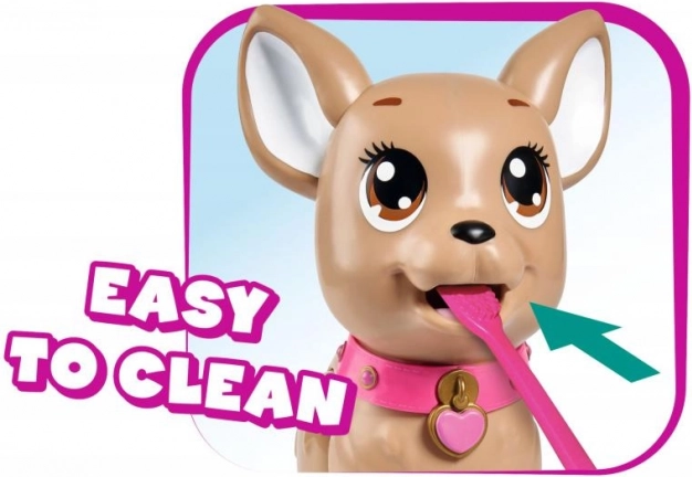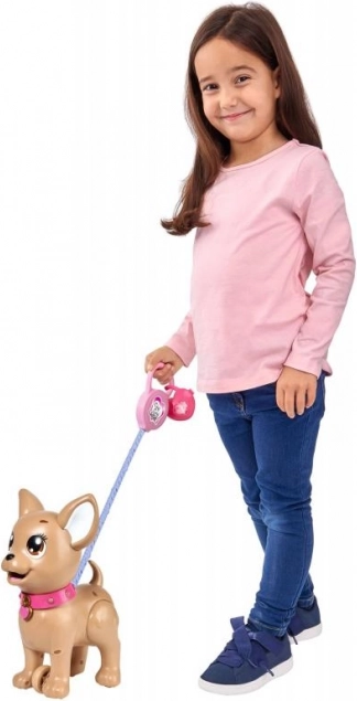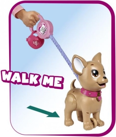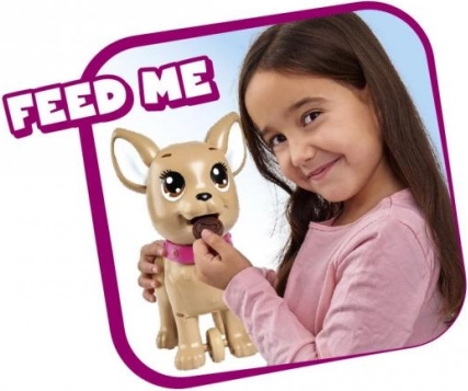 Roztomilý interaktivní pejsek čivava z kolekce CHI CHI LOVE učí děti starat se o mazlíčka zábavnou formou. Nakrmte ho modelínou, vydejte se na procházku a po lehkém stisku vodítka udělá hromádku. Součástí je vodítko, modelína, tvarovací forma a krabička ve tvaru srdce se sáčky pro snadný úklid. Velikost pejska je přibližně 20 cm.