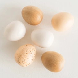- Obsah balení: 6 dřevěných vajec + 1 dřevěná bedýnka s úchyty
