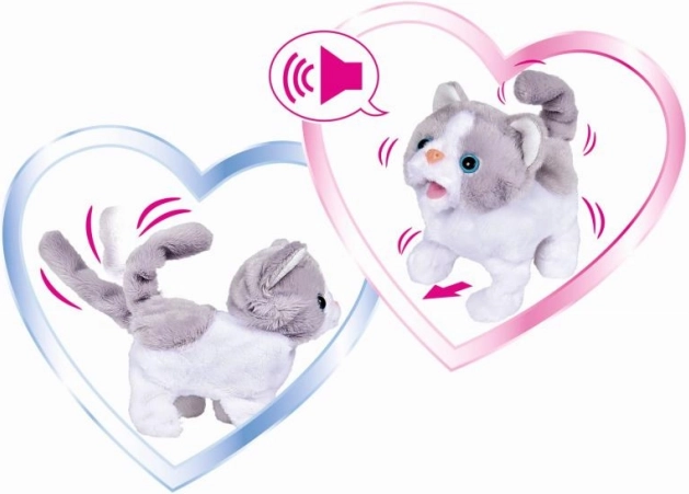 Roztomilá interaktivní kočička z měkkého plyše potěší každé dítě. Pohybuje se dvěma rychlostmi, vrtí ocáskem a vydává zábavné zvuky. Ideální společník pro každodenní hraní i mazlení.