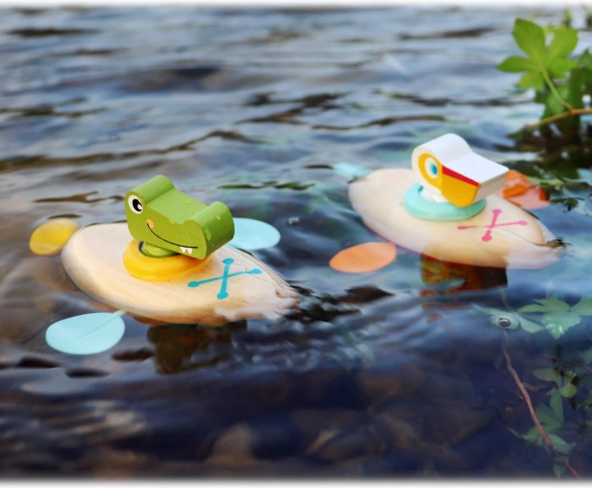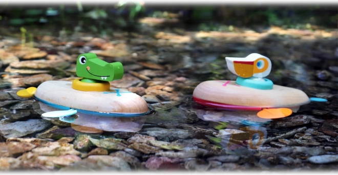 Dřevěná vodní hračka je šetrnější alternativou k běžným gumovým hračkám. Díky příjemným materiálům a oblým tvarům je bezpečná a pohodlně se drží i v malých ručkách.